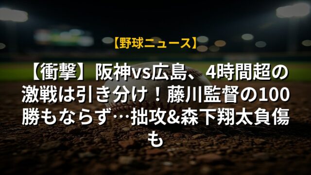 【衝撃】阪神vs広島、4時間超の激戦は引き分け!藤川監督の100勝もならず…拙攻&森下翔太負傷も
