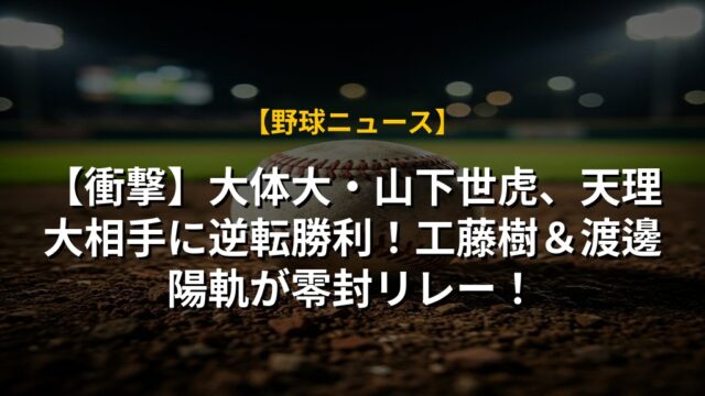 【衝撃】大体大・山下世虎、天理大相手に逆転勝利!工藤樹&渡邊陽軌が零封リレー!