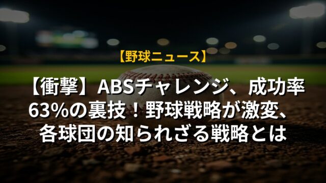 【衝撃】ABSチャレンジ、成功率63%の裏技!野球戦略が激変、各球団の知られざる戦略とは