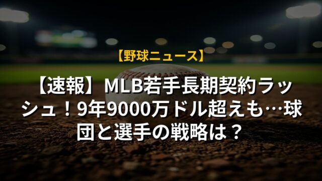 【速報】MLB若手長期契約ラッシュ!9年9000万ドル超えも…球団と選手の戦略は?