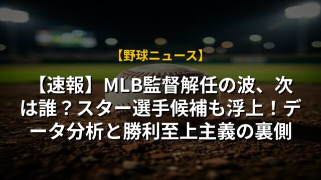 【速報】MLB監督解任の波、次は誰?スター選手候補も浮上!データ分析と勝利至上主義の裏側