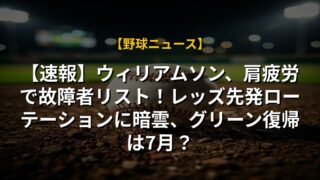 【速報】ウィリアムソン、肩疲労で故障者リスト!レッズ先発ローテーションに暗雲、グリーン復帰は7月?