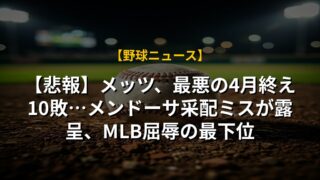 【悲報】メッツ、最悪の4月終え10敗…メンドーサ采配ミスが露呈、MLB屈辱の最下位