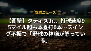 【衝撃】タティスJr.、打球速度95マイル超も本塁打0本…スイング不振で「野球の神様が怒っている」