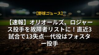 【速報】オリオールズ、ロジャース投手を故障者リストに!直近3試合で13失点…代役はフォスター投手