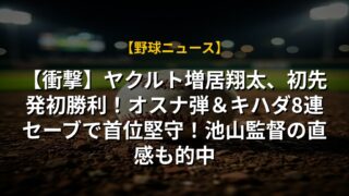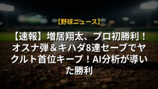 【速報】増居翔太、プロ初勝利!オスナ弾&キハダ8連セーブでヤクルト首位キープ!AI分析が導いた勝利