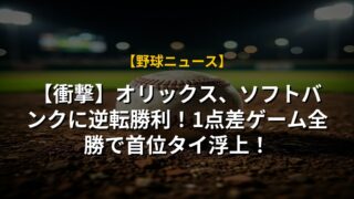 【衝撃】オリックス、ソフトバンクに逆転勝利!1点差ゲーム全勝で首位タイ浮上!
