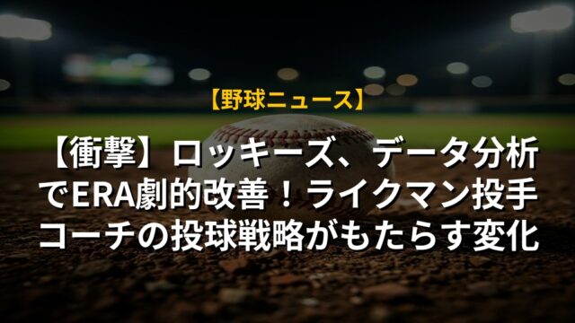 【衝撃】ロッキーズ、データ分析でERA劇的改善!ライクマン投手コーチの投球戦略がもたらす変化