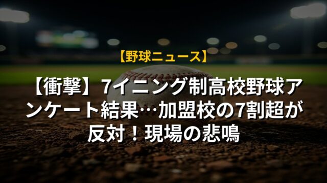 【衝撃】7イニング制高校野球アンケート結果…加盟校の7割超が反対!現場の悲鳴