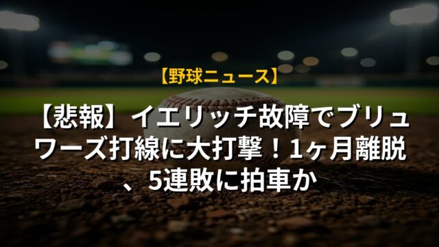 【悲報】イエリッチ故障でブリュワーズ打線に大打撃!1ヶ月離脱、5連敗に拍車か
