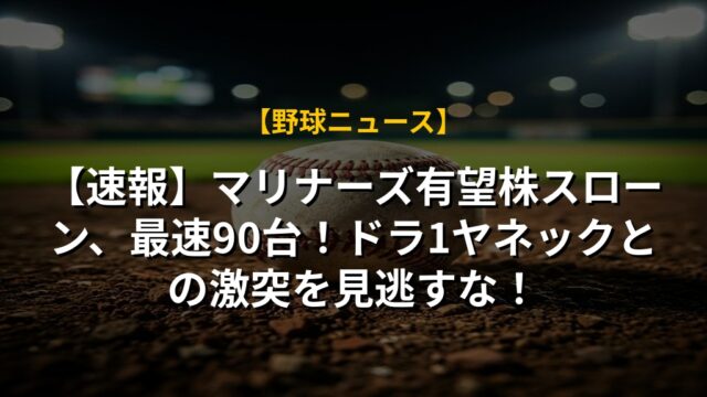 【速報】マリナーズ有望株スローン、最速90台!ドラ1ヤネックとの激突を見逃すな!