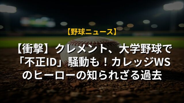 【衝撃】クレメント、大学野球で「不正ID」騒動も!カレッジWSのヒーローの知られざる過去