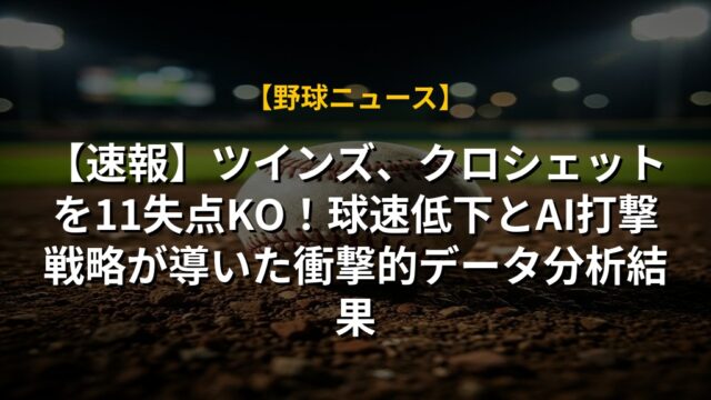 【速報】ツインズ、クロシェットを11失点KO!球速低下とAI打撃戦略が導いた衝撃的データ分析結果
