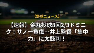 【速報】金丸投球8回2/3ドミニク!サノー負傷…井上監督「集中力」に太鼓判!