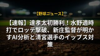 【速報】達孝太初勝利!水野適時打でロッテ撃破、新庄監督が明かすAI分析と清宮選手のイップス対策