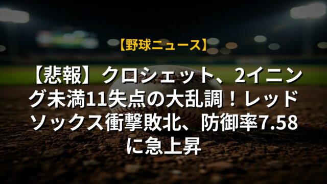【悲報】クロシェット、2イニング未満11失点の大乱調!レッドソックス衝撃敗北、防御率7.58に急上昇