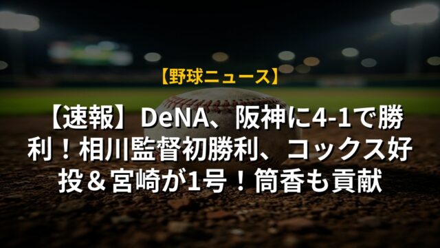 【速報】DeNA、阪神に4-1で勝利!相川監督初勝利、コックス好投&宮崎が1号!筒香も貢献