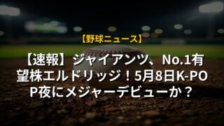 【速報】ジャイアンツ、No.1有望株エルドリッジ!5月8日K-POP夜にメジャーデビューか?