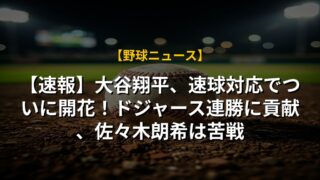 【速報】大谷翔平、速球対応でついに開花!ドジャース連勝に貢献、佐々木朗希は苦戦