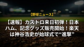 【速報】カストロ来日初弾!日本ハム、記念グッズ販売開始!楽天は神谷浩史が始球式で“進撃”