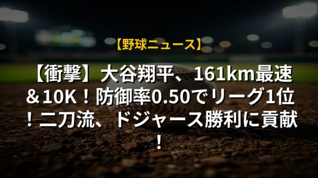 【衝撃】大谷翔平、161km最速&10K!防御率0.50でリーグ1位!二刀流、ドジャース勝利に貢献!