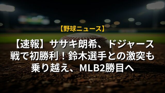 【速報】ササキ朗希、ドジャース戦で初勝利!鈴木選手との激突も乗り越え、MLB2勝目へ