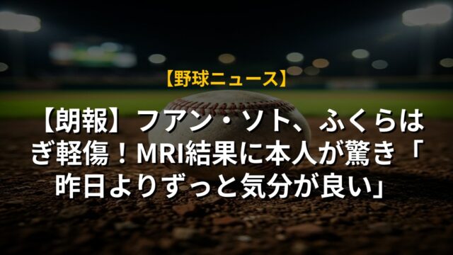 【朗報】フアン・ソト、ふくらはぎ軽傷!MRI結果に本人が驚き「昨日よりずっと気分が良い」