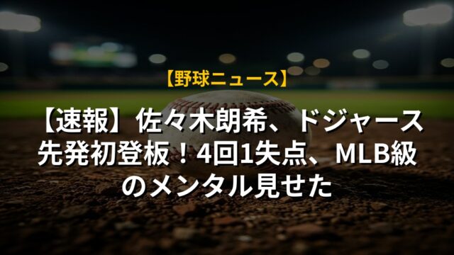 【速報】ササキ朗希、MLB初登板は4回1失点!制球改善で米メディアも評価「前向き」