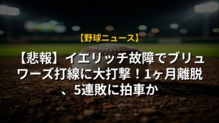 【悲報】イエリッチ故障でブリュワーズ打線に大打撃!1ヶ月離脱、5連敗に拍車か