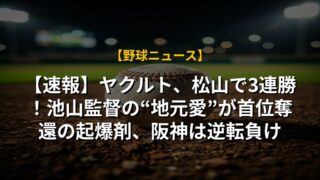 【速報】ヤクルト、松山で3連勝!池山監督の“地元愛”が首位奪還の起爆剤、阪神は逆転負け