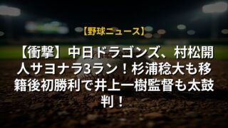 【衝撃】中日ドラゴンズ、村松開人サヨナラ3ラン!杉浦稔大も移籍後初勝利で井上一樹監督も太鼓判!