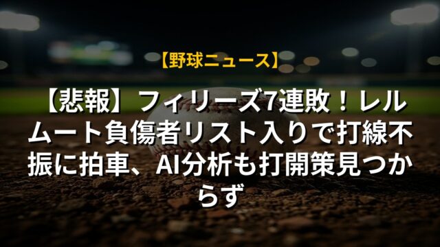 【悲報】フィリーズ7連敗!レルムート負傷者リスト入りで打線不振に拍車、AI分析も打開策見つからず
