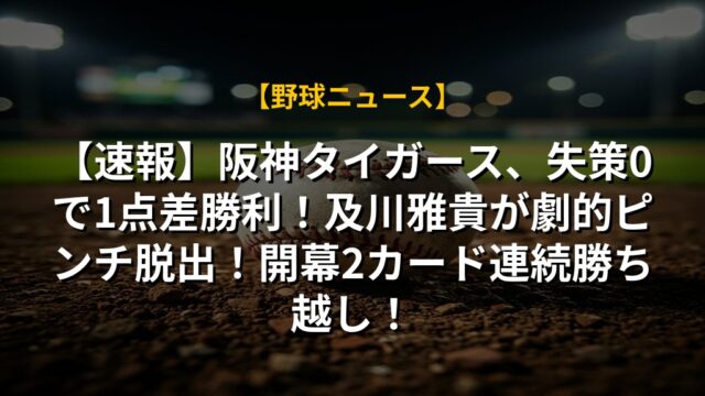 【速報】阪神タイガース、失策0で1点差勝利!及川雅貴が劇的ピンチ脱出!開幕2カード連続勝ち越し!