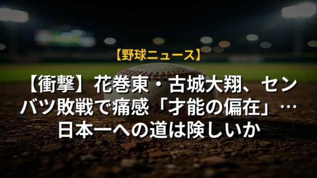 【衝撃】花巻東・古城大翔、センバツ敗戦で痛感「才能の偏在」…日本一への道は険しいか