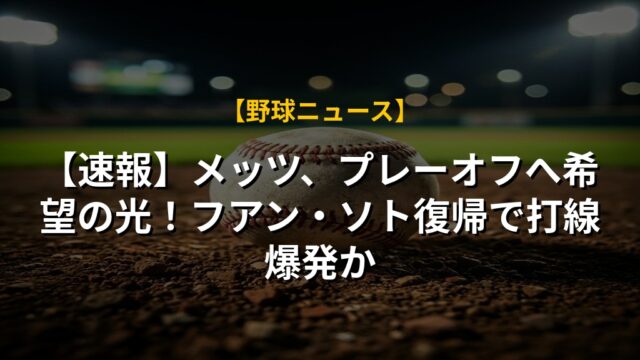 【速報】メッツ、プレーオフへ希望の光!フアン・ソト復帰で打線爆発か