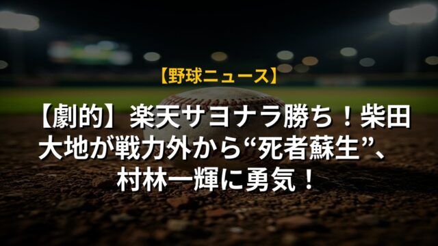 【劇的】楽天サヨナラ勝ち!柴田大地が戦力外から“死者蘇生”、村林一輝に勇気!