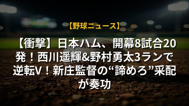 【衝撃】日本ハム、開幕8試合20発!西川遥輝&野村勇太3ランで逆転V!新庄監督の“諦めろ”采配が奏功
