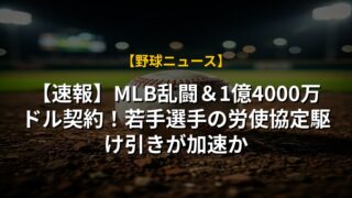 【速報】MLB乱闘&1億4000万ドル契約!若手選手の労使協定駆け引きが加速か