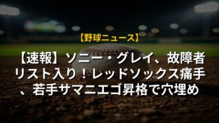 【速報】ソニー・グレイ、故障者リスト入り!レッドソックス痛手、若手サマニエゴ昇格で穴埋め