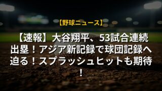 【速報】大谷翔平、53試合連続出塁!アジア新記録で球団記録へ迫る!スプラッシュヒットも期待!