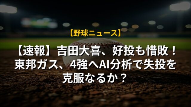 【速報】吉田大喜、好投も惜敗!東邦ガス、4強へAI分析で失投を克服なるか?