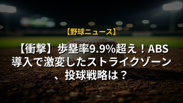 【衝撃】歩塁率9.9%超え!ABS導入で激変したストライクゾーン、投球戦略は?