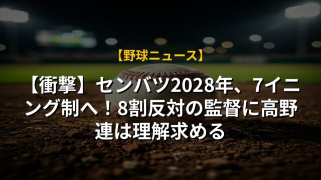 【衝撃】センバツ2028年、7イニング制へ!8割反対の監督に高野連は理解求める