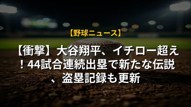 【衝撃】大谷翔平、イチロー超え!44試合連続出塁で新たな伝説、盗塁記録も更新