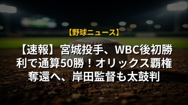 【速報】宮城投手、WBC後初勝利で通算50勝!オリックス覇権奪還へ、岸田監督も太鼓判