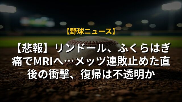 【悲報】リンドール、ふくらはぎ痛でMRIへ…メッツ連敗止めた直後の衝撃、復帰は不透明か