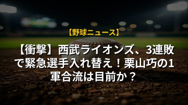 【衝撃】西武ライオンズ、3連敗で緊急選手入れ替え!栗山巧の1軍合流は目前か?