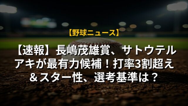 【速報】長嶋茂雄賞、サトウテルアキが最有力候補!打率3割超え&スター性、選考基準は?