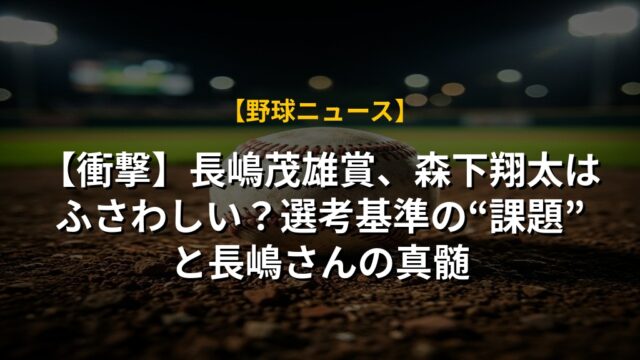 【衝撃】長嶋茂雄賞は森下翔太に?阪神タイガースが体現する「多面的な価値」とAI選考の可能性
