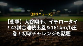 【衝撃】大谷翔平、イチロータイ!43試合連続出塁&161km/h圧巻!初球チャレンジも話題